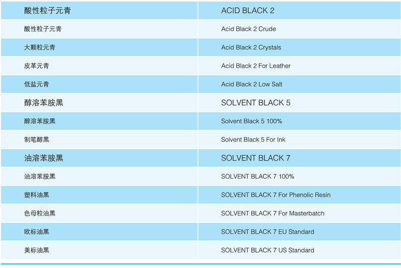 我公司生产的苯胺黑系列染料,具有着色力高、稳定性好的优点,可广泛应用于墨水、鞋油、木材、皮革、树脂、塑料、油墨等领域。